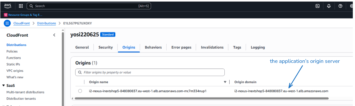 2. Under **Origins**, review the current configuration (typically pointing to your application server or load balancer).
