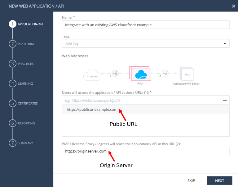 * Provide the **upstream origin URL** (e.g. your CloudFront origin)