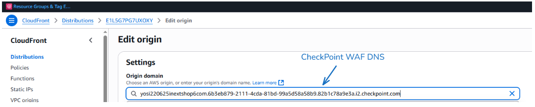 #### 4. Update CloudFront Configuration - Change Origin to WAF